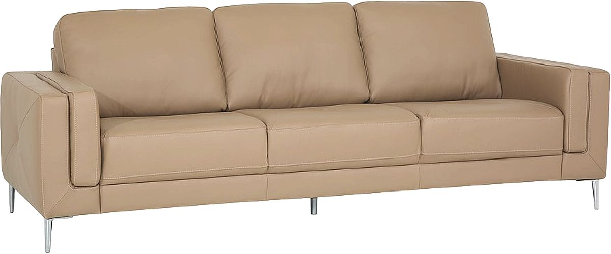 Rounded edges feature added padding to soften each angle. The trademark stiletto legs are available in either a solid wood or brushed metal option. Impressive in both a sofa or sectional configuration, the Zuri collection is an eye-catching addition to your living space.