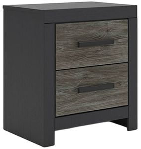 The Broachmyn 2-drawer nightstand offers a striking two-tone finish with matte black framing and weathered gray oak-grain fronts. Its framed panels, pilasters, and large dark pulls blend bold contrast with refined, functional storage.Read More