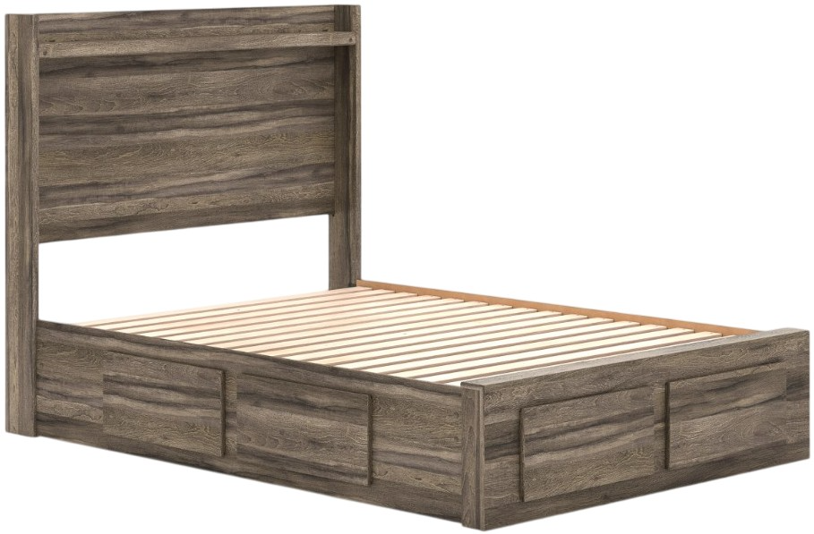Rest in the casually cool style of this full panel storage bed. A weathered brown finish and chill LED lighting create an easygoing vibe, setting the scene in your restful retreat. Spacious drawers underneath provide plenty of storage. The bed's clean-lined design provides a fuss-free look.Read More
