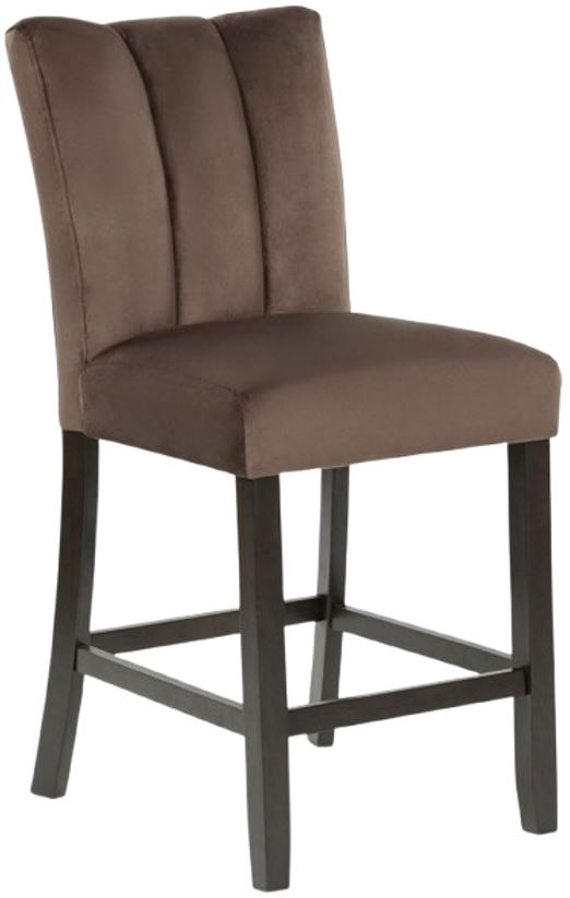 This Jeshina counter height bar stool reflects your highly contemporary point of view. Its ultra-soft velvet upholstery in chocolate brown is a feast for the senses. Channel stitching details give the stool an elevated, tailored feel. What a delicious choice for an elegantly elevated dining room.Read More