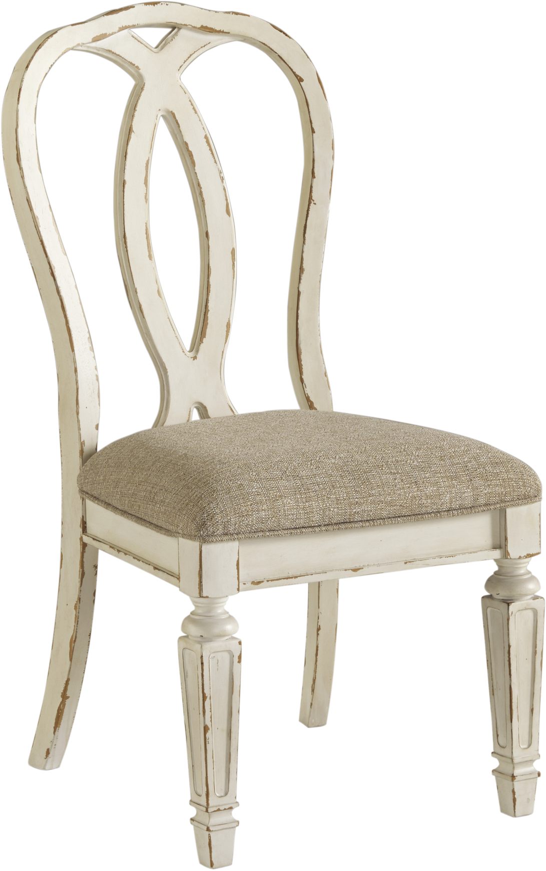 French twist. With its stylized ribbon back, chipped white finish and plushly cushioned seat, this dining room chair has all the right ingredients for a French country-inspired feast for the eyes.
