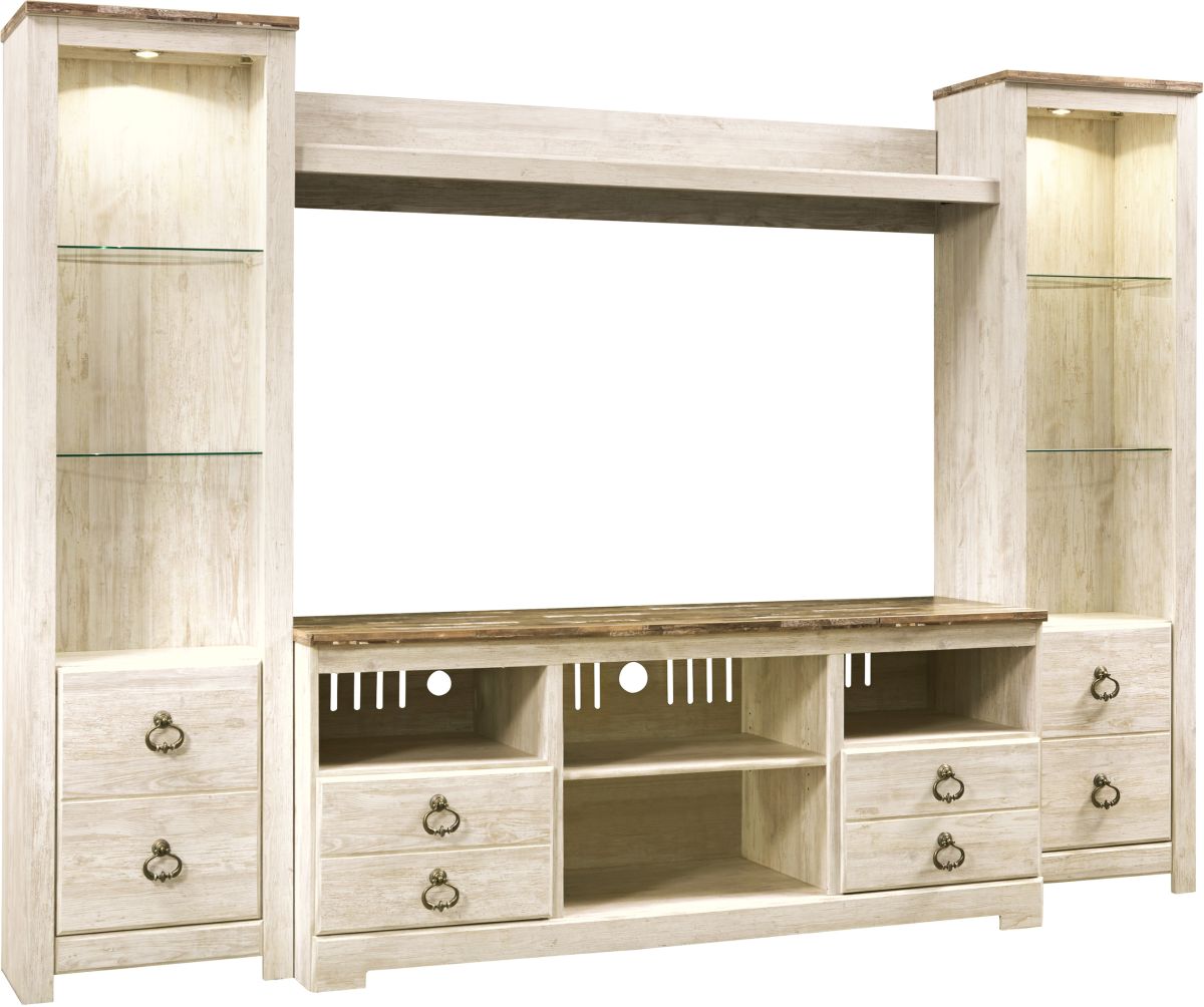 Two-tone finish in white wash replicated worn through paint and a replicated wood grained block pattern with an authentic touch. Ring pull hardware in an antique brass colour, accented with white paint hang up. The W267-68 is compatible with the W100-01,02 LED fireplace insert and has side roller glides for smooth operating drawers. The lighted tall pier features glass shelves. Media chest (268) includes an adjustable/removable shelf. The W100-01 LED fireplace insert is included with the W267-368 fireplace mantel. The W267-268 is compatible with the W100-01,02,101 LED fireplace insert. The W267-468 features two sliding doors. The W267-468 require complete assembly (not all tools are included).